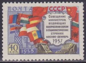40 коп. Совещание Министров Связи. Флаг Перевёрнут. 1 марка.