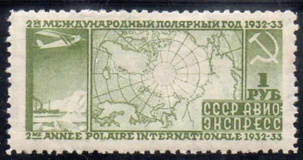 1 руб. зелёная. Международный Полярный Год. 1 марка.