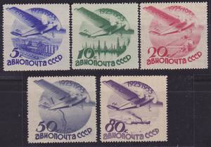 Гражданская Авиация. Серия 5 марок.