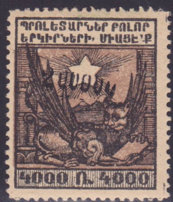 Чёрная надпечатка "200000" на 4000 (Р). Мифическое Животное и Советская Звезда. 1 марка.