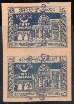 Надпечатка "Начальник Бакинского желдор. почт. отд." на 400 руб. Архитектура. Пара марок.