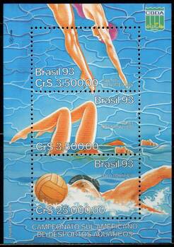 Южно-американские соревнования по водным видам спорта. Почтовый Блок.