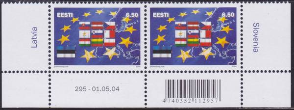 Вступление в ЕС. Совместный выпуск 10 стран - новых членов ЕС. Пара марок с Контрольным Знаком.