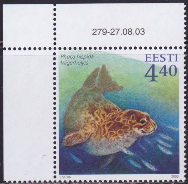 Эстония. Фауна Эстонии: Тюлень. Угловая марка с Контрольным Знаком.