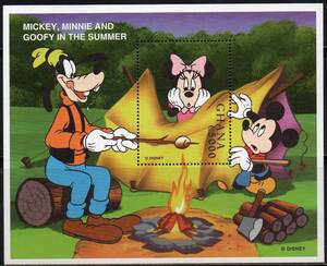 С 5000. Уолт Дисней. Гуфи, Минни и Микки Маус летом. Блок.