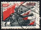40 коп. Флаг над Северным Полюсом. Штемпель: "САХАЛИН 30.03.1938-0". 1 марка.