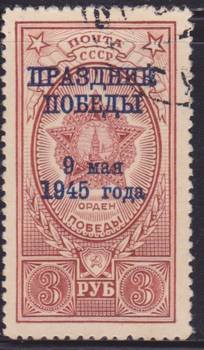 Чёрно-голубая типографская надпечатка: " Праздник Победы / 9 мая 1945 года ".