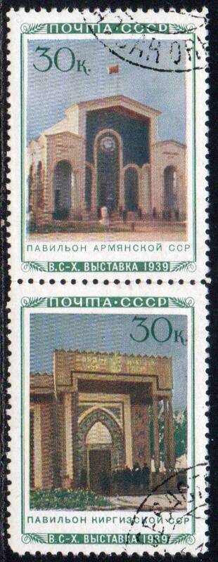 Павильон "Армянской ССР" и Павильон "Киргизской ССР". Пара марок.