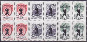 Герб Карелии: 250 + 400 + 600 + 1100. 3 Квартблока ( 12 марок ).