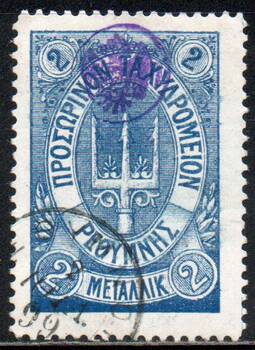 Литография. Перф. Лин. 11 1/2. Погашена круглым почтовым штемпелем "Ретимно". Без тонких мест.