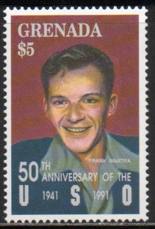 5 $. Френк Синатра. 50 лет Культурной Организации ( USO ). 1 марка.