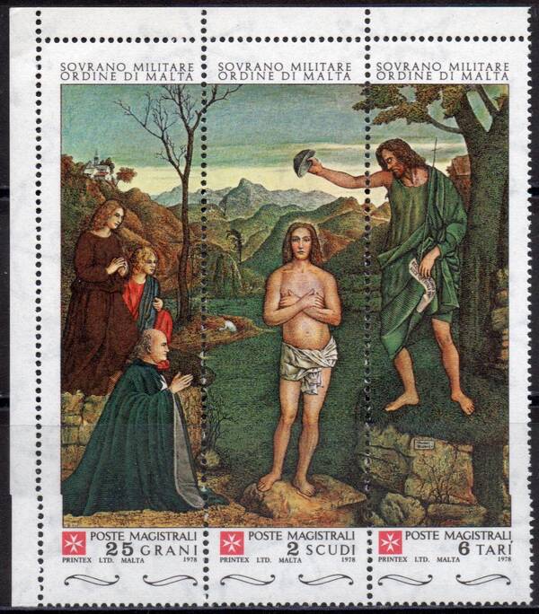 Рождество. Религиозная Живопись. Серия 3 марки в сцепке.