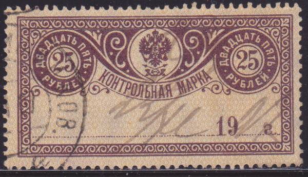 Перевёрнутый фон: 25 руб. лилово-коричневая, 1 марка.