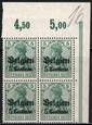 Надпечатка "Belgien 5 Centimes" на 5 Pf. Угловой Квартблок с Контрольными Знаками.