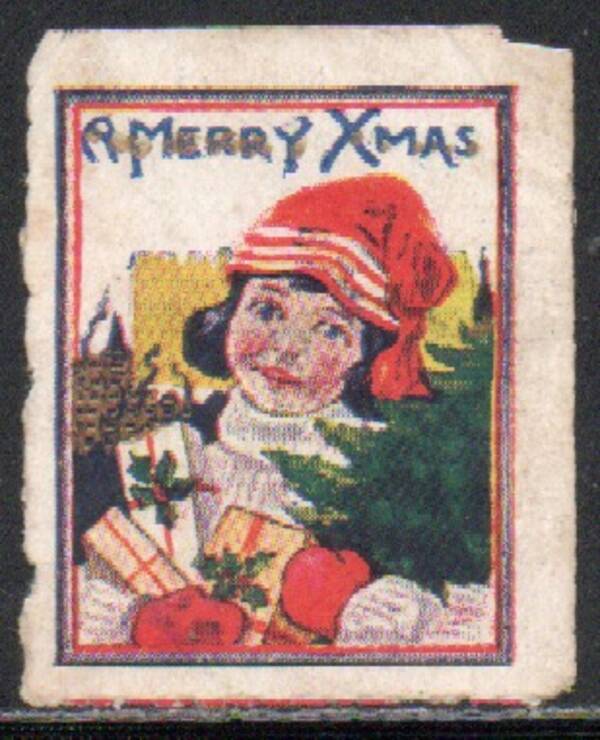 Весёлого Рождества! Девочка с подарками. 1 марка.