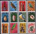 Птицы, улитки и художественные ремесла. Серия 12 марок.