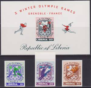 Зимние Олимпийские Игры в Гренобле 1968. Серия 3 марки + 1 Блок.
