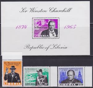 Сер Унстон Черчилль. Серия 3 марки + 1 Блок.