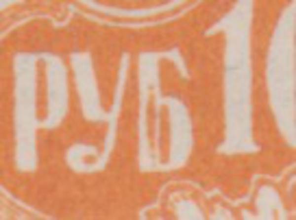 Литография. Без зубцов. Свой клей. Дефект клише - тёмный штрих в букве "Б" - в слове "РУБ" - 2-ая марка.