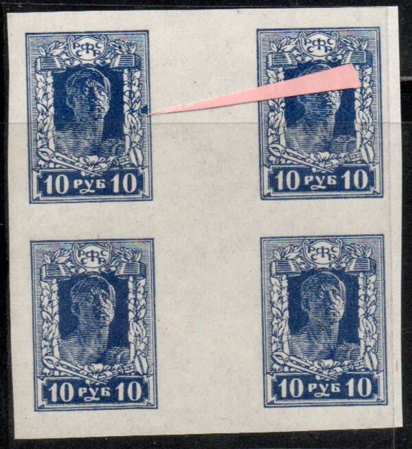 10 рублей. Рабочий. Разбита рамка справа. 1-ая марка Квартблока с дорожкой.