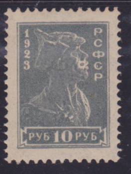 10 руб. серо-зелёная. Белое кольцо в носу, 1 марка.