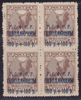Недопечатана " Щ " и " И ": 1-ая и 3-ая Марки. Квартблок.