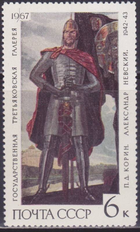 6 коп. П.Корин "Александр Невский": "Дробь в Дате 19/67". 1 марка.