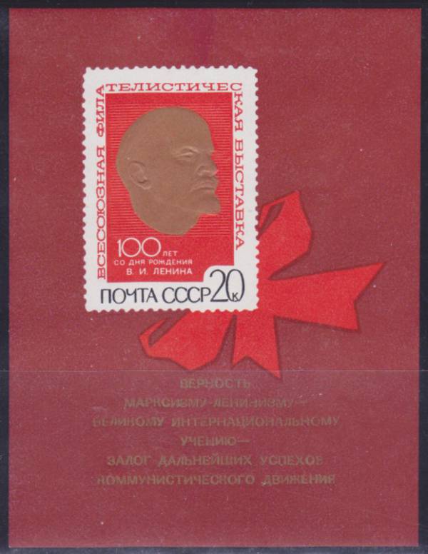 Высокая печать. Горизонтальные линии тиснения фона. Тонкий текст + точка в букве " В " ( В слове " Всесоюзная ". )