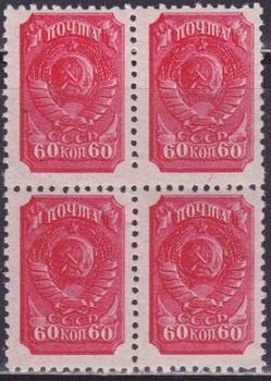 60 коп. Розовая. Герб СССР. Пропуск перфорации. Квартблок.