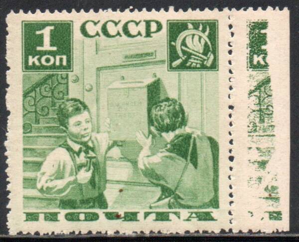 1 коп. Пионеры с Почтовым Ящиком. Марка с изображением на поле.