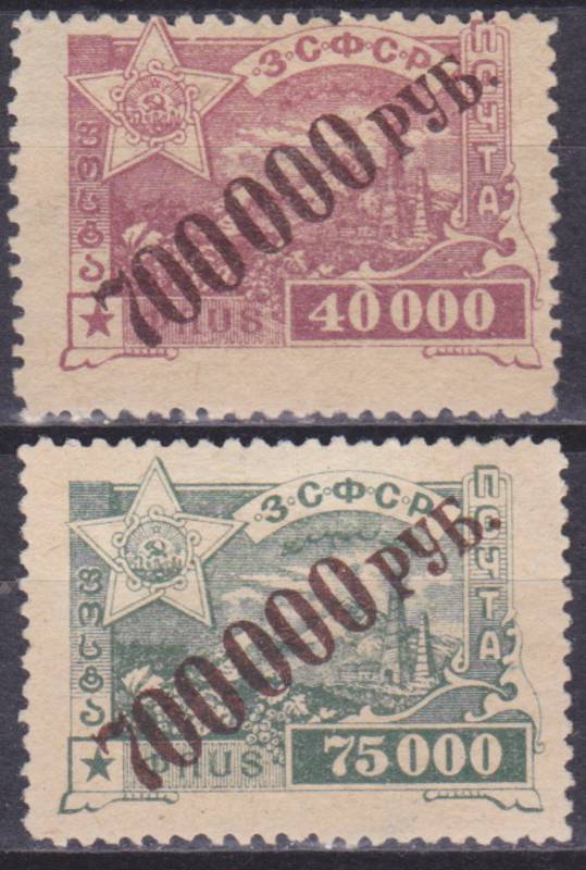 Чёрная Типографская Надпечатка на марках № 8,9 ЗСФСР.