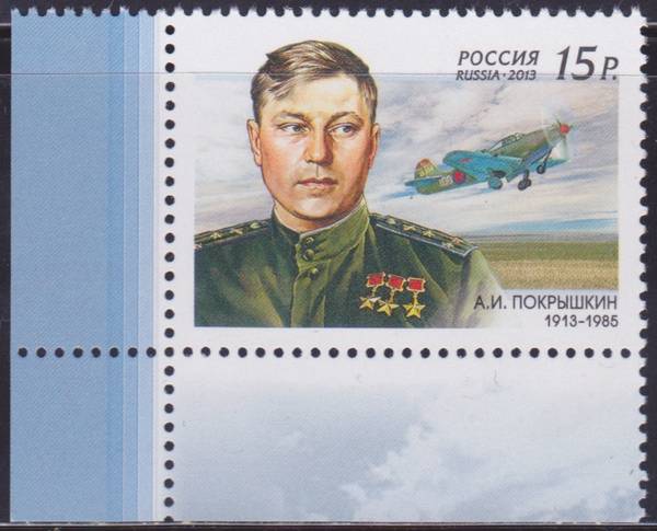 100 лет со дня рождения А.И.Покрышкина ( 1913-1985 ). 1 марка.