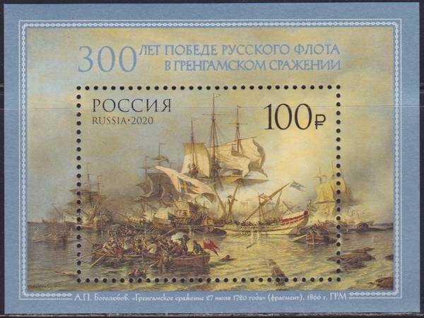 300 лет Победе Русского Флота в Гренгамском Сражении. Почтовый Блок.