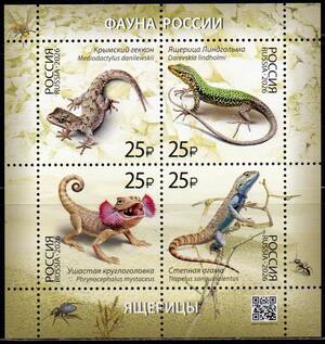Фауна России. Ящерицы. Серия 4 марки в Квартблоке.