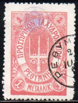 Литография. Перф. Лин. 11 1/2. Погашена круглым почтовым штемпелем "Ретимно". Без тонких мест.