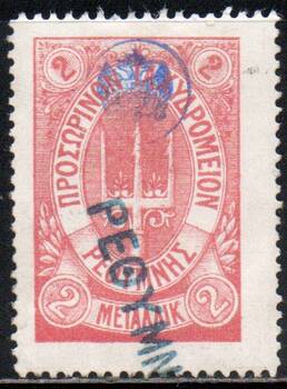 Литография. Перф. Лин. 11 1/2. Погашена строчным штемпелем "Ретимно". Без тонких мест.