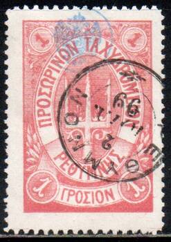 Литография. Перф. Лин. 11 1/2. Погашена круглым почтовым штемпелем "Ретимно". Без тонких мест.