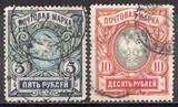 5 и 10 рублей. Вертикальное верже, 2 гашеные марки.