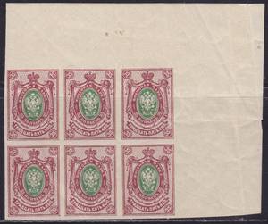 35 коп. Красно-коричневая / Зелёная. Угловой Шестиблок.
