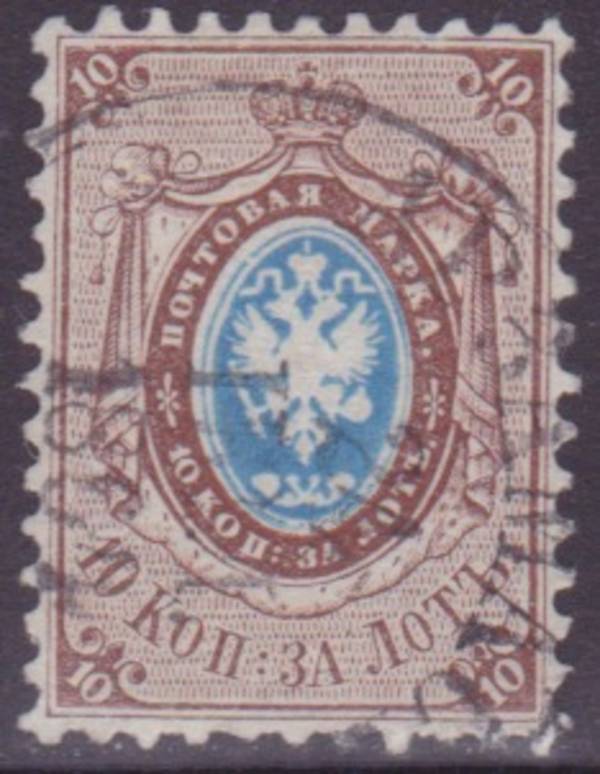 10 коп. за лот. Коричневая/ синяя. Перф. Рам. 12 1/2.