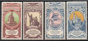 3+3 к., 5+3 к., 7+3 к., 10+3 к. Типография, без водяного знака. С зубцами. Свой клей.