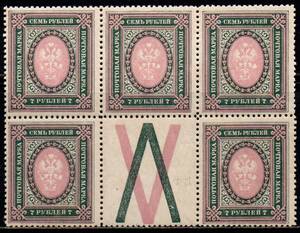 7 рублей Вертикальная Меловая Сетка. " Двойная Рамка ". Перф. Лин. 12 1/2. Шестиблок с Контрольным Знаком "V". Свой клей! |