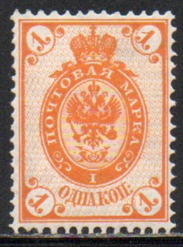 1 коп. оранжевая. Типография. " со стрелками ". Горизонтальный водяной знак. Металлический отлив. Перф. Рам. 14 : 14 1/2. Свой клей. |