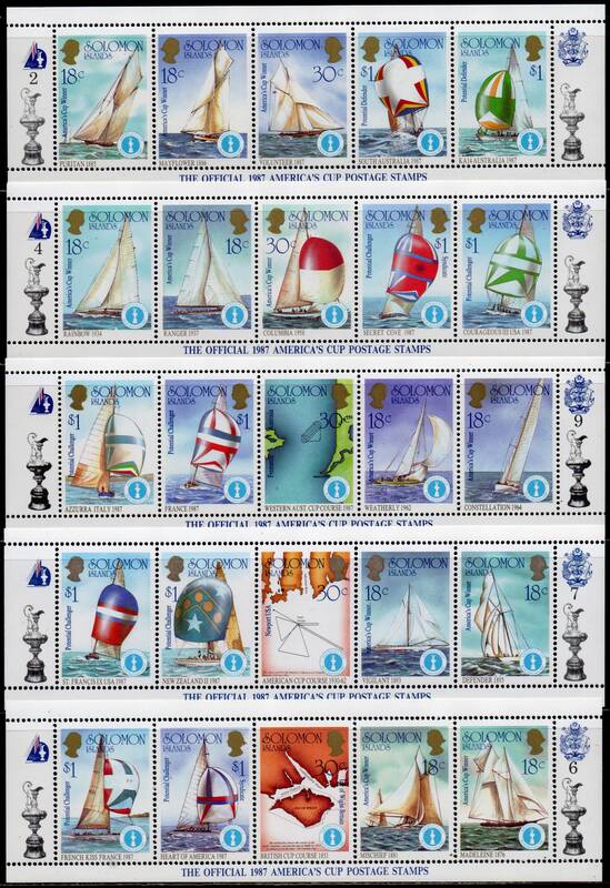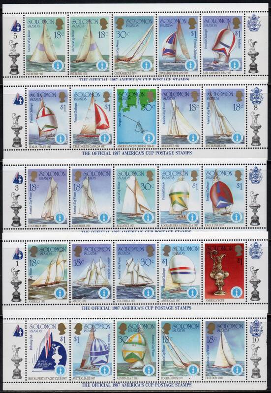 Парусная Регата на Кубок Америки 1987 год. Серия 50 марок в штрайфах.