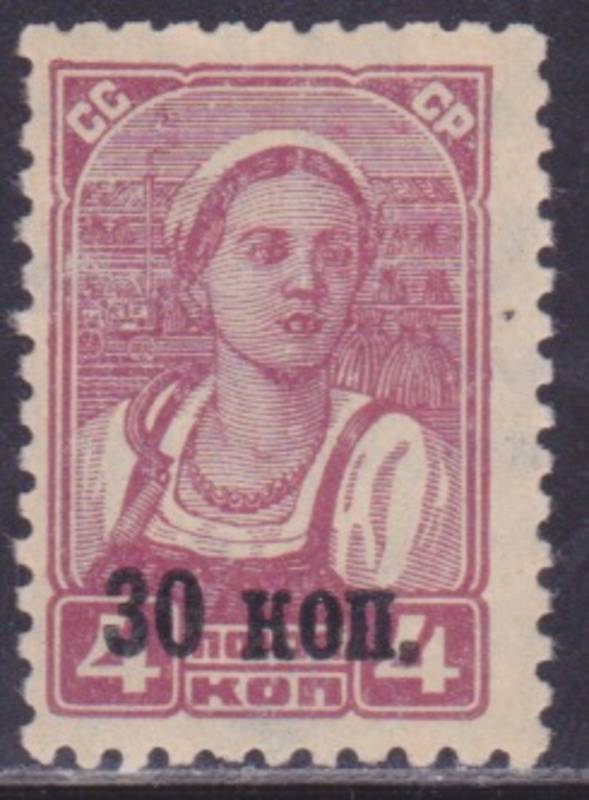 Типографская Надпечатка "30 коп." на 4 коп. Работница. 1 марка.