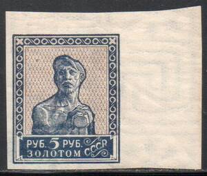 5 рублей. Тёмно-синяя, коричневая. Рабочий. Марка с полем листа.