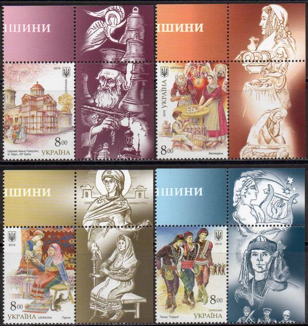 Национальные меньшинства Украины. Греки. Серия 4 марки.