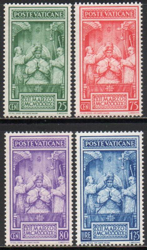 Папа Пий XII рукоположен в сан 12 марта 1939 года. Серия 4 марки.