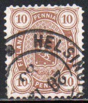 Типография. Без водяного знака. Перф. Лин. 12 1/2. Погашена почтовым штемпелем "Helsingfors 28.12.1883".