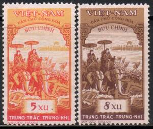 Сёстры Трунг на слонах. Серия 2 марки.